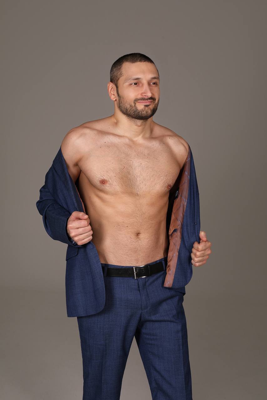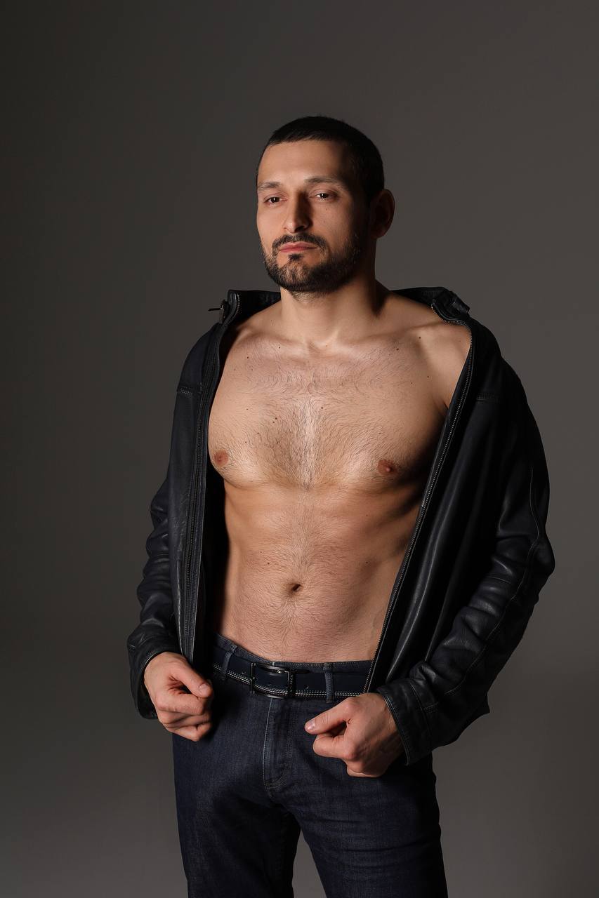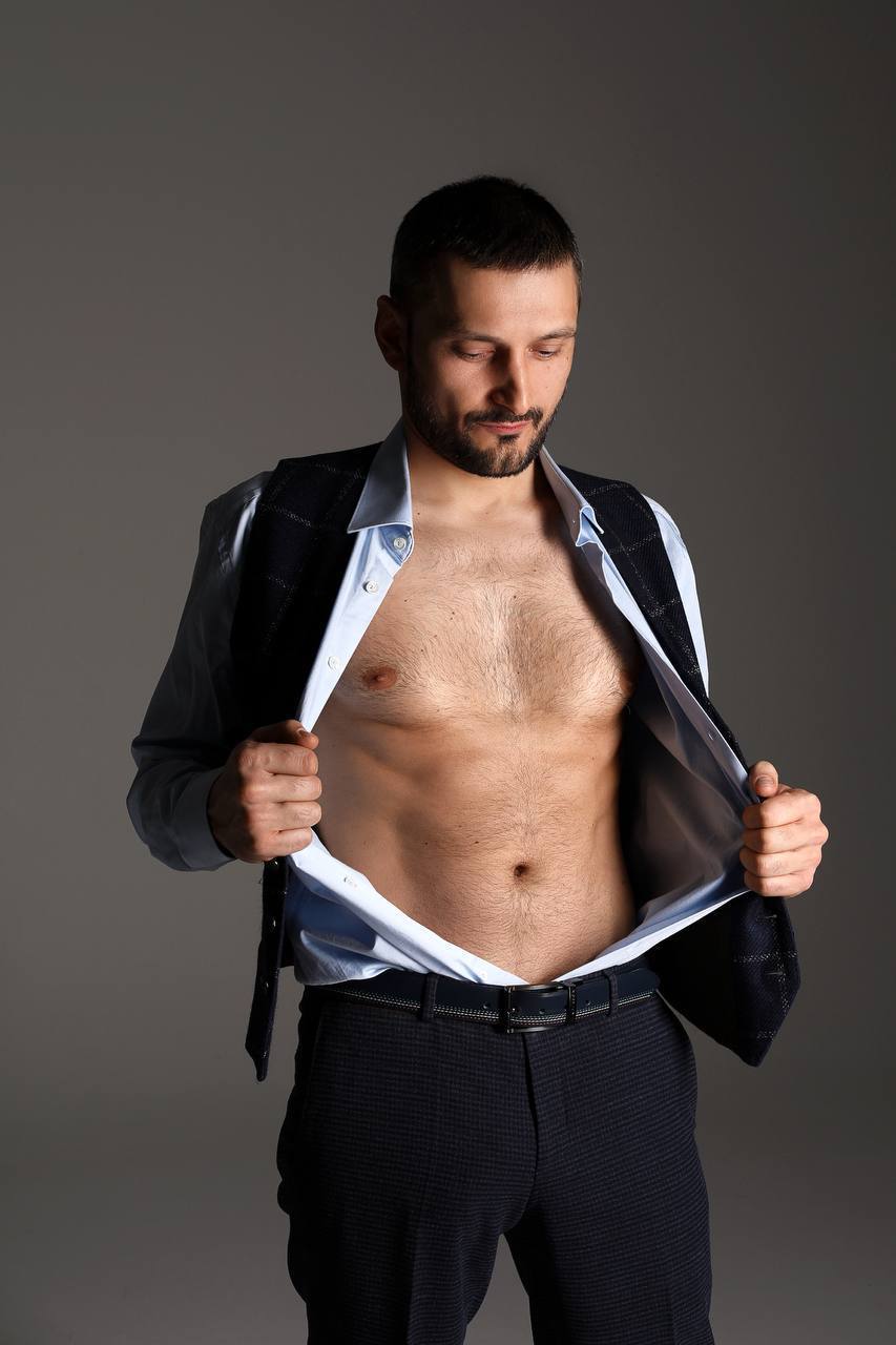 Брутальный и очень горячий мужчина с мускулистой фигурой и уверенными манерами.