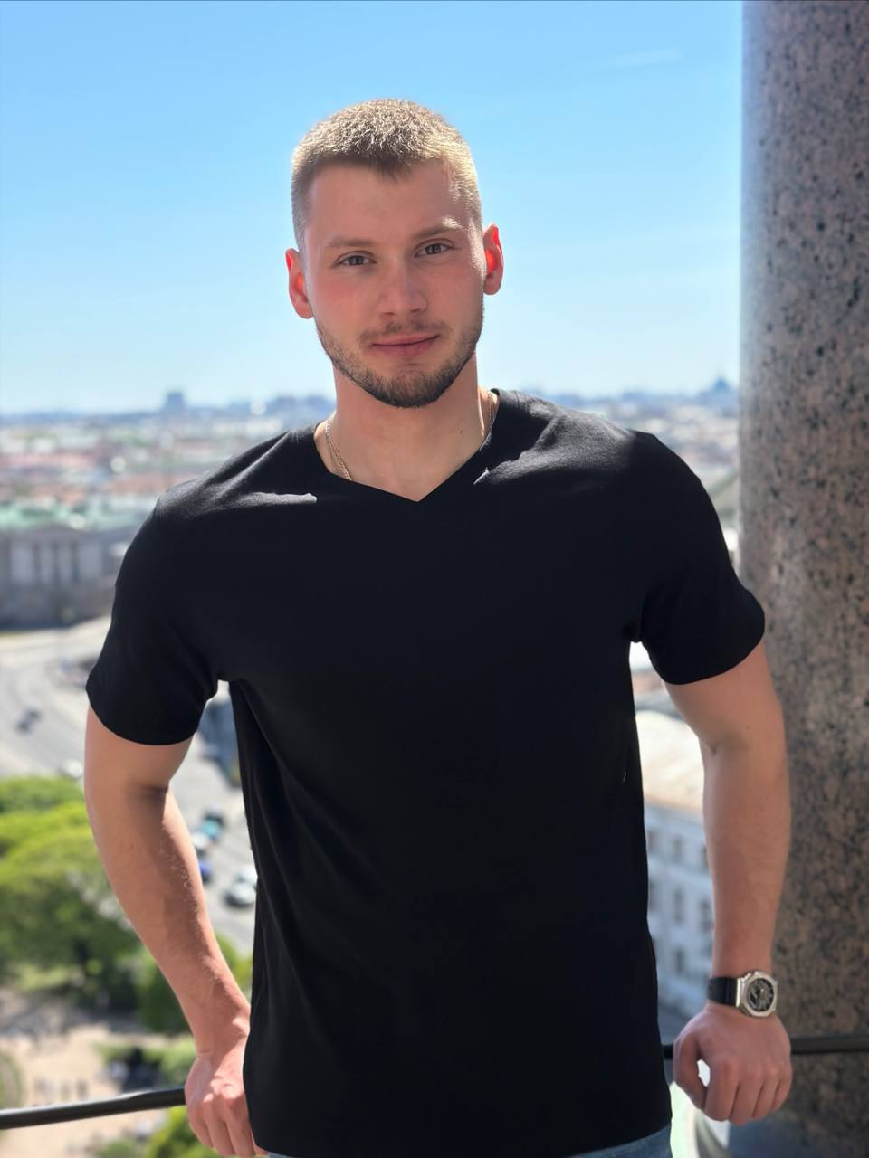 Виталий — ухоженный, спортивный мужчина с уверенной подачей и хорошими манерами. Легко располагает к себе, внимателен к деталям и настроению партнёрши, создаёт спокойную и комфортную атмосферу.